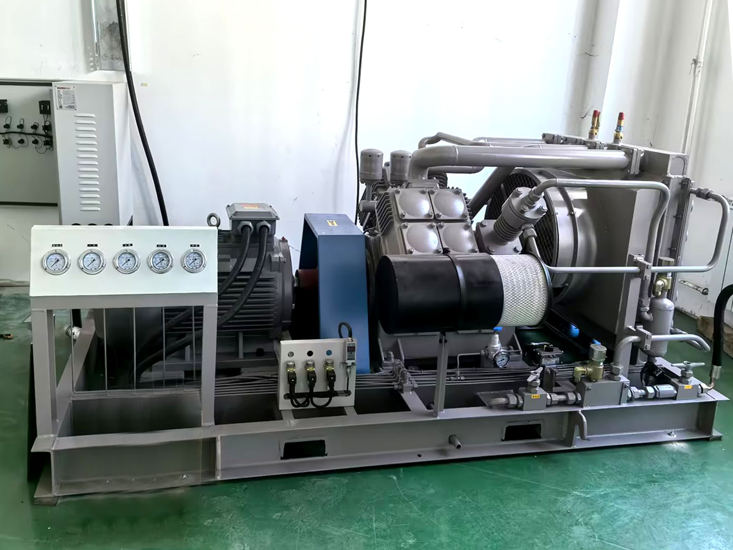 Força motriz poderosa e saída estável:O volume de escape é tão alto quanto 5 metros cúbicos por minuto, e a pressão de trabalho pode atingir 60 kg, fornecendo suporte de gás de alta pressão contínuo e estável para experimentos.